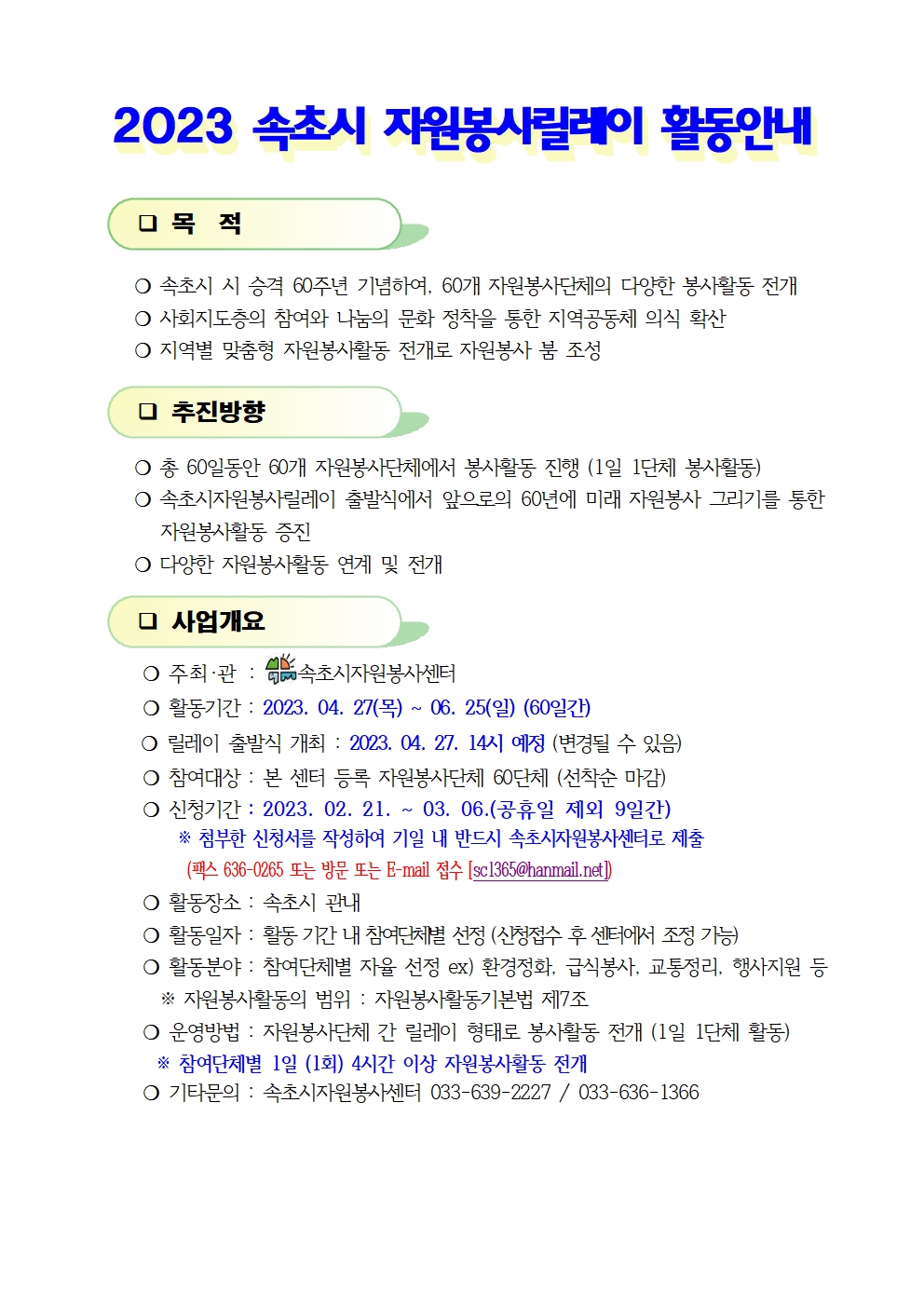 2023 ¼ÓÃʽà ÀÚ¿øºÀ»ç¸±·¹ÀÌ Âü°¡ ¾È³»