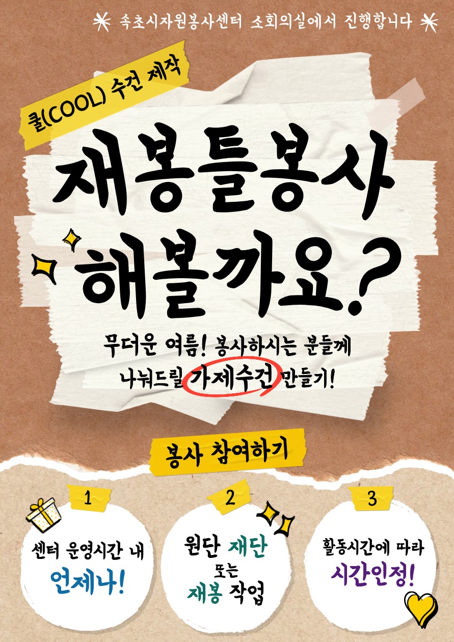 ¡¸Äð(COOL) ³ª´® ¼ö°Ç Á¦ÀÛ¡¹ ºÀ»ç¿¡ ÇÔ²²ÇÏ½Ç ºÐµéÀ» ¸ðÁýÇÕ´Ï´Ù 😊
